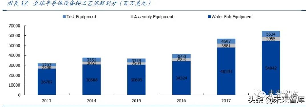 1.2、前道設(shè)備占主要部分,測試需求增速最快