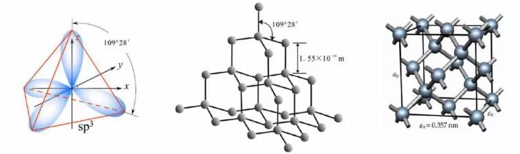 金剛石的雜化軌道電子云分布、原子結(jié)構(gòu)和晶胞結(jié)構(gòu)