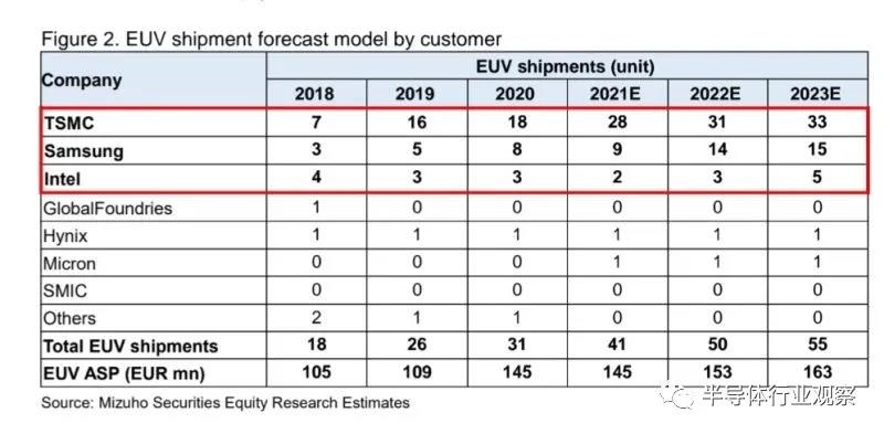顯然,先進(jìn)制程芯片龍頭臺積電對EUV光刻機(jī)的需求量最大,可以與英特爾做一下比較,到2023年,預(yù)計(jì)臺積電共擁有133臺EUV光刻機(jī),而英特爾為20臺。