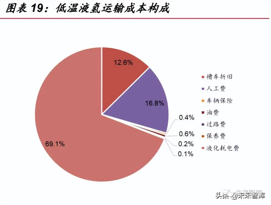 從低溫液氫運(yùn)輸成本構(gòu)成來(lái)看,液化成本占總成本近 70%,是低溫液氫運(yùn)輸成 本主要構(gòu)成,因此降低低溫液氫運(yùn)輸成本首要解決的是降低氫氣液化成本。