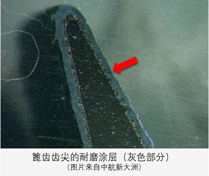 既然有“玻璃心”涂層,那肯定也有“勇敢的心”——耐磨涂層(Wear Resistant Coating),主要應(yīng)用于需要防止摩擦磨損以及沖擊磨損的發(fā)動機(jī)零部件,例如軸類零件、W封嚴(yán)環(huán)以及低渦葉片緣板的配合面。當(dāng)然,在蜂窩封嚴(yán)系統(tǒng)中,也存在著耐磨涂層,用來防止篦齒的齒尖發(fā)生磨損。還有一種耐磨涂層,多用于軍用航空發(fā)動機(jī)的壓氣機(jī)葉片,用來面對惡劣環(huán)境下的抗沖蝕磨損。
