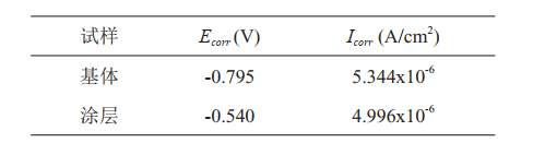 表 7 涂層和基體的腐蝕數(shù)據(jù)