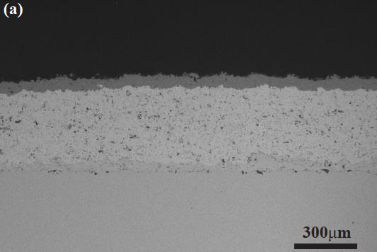 圖 5 Cr2O3-TiO2/nano-YSZ 復(fù)合涂層截面形貌:(a) 低倍;(b) 高倍