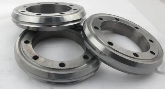 硬質(zhì)合金輥環(huán)廣泛地應(yīng)用于高線軋機(jī)。在高速線材軋機(jī)中,不同機(jī)架上的輥環(huán)所受到的軋制力、軋制力矩及磨損等均有不同,相應(yīng)地須使用不同的硬質(zhì)合*號(hào)。通常情況下,前道機(jī)架(如中軋及預(yù)精軋機(jī)架)其軋制負(fù)荷較大。要求輥環(huán)有良好的韌性和強(qiáng)度,須選擇粘結(jié)相含量較高的牌號(hào);而后道機(jī)架(如精軋機(jī)架、減定徑機(jī)架RSM、雙模塊TMB機(jī)架)過(guò)鋼時(shí)間長(zhǎng),要求輥環(huán)有更好的耐磨性,要選擇粘結(jié)劑含量低的牌號(hào):尤其是成品及成品前機(jī)架輥環(huán)對(duì)線材成品的表面質(zhì)量和公差有直接影響,與前幾個(gè)機(jī)架相比,更需要經(jīng)常換輥、換槽,通常更換次數(shù)往往是前幾個(gè)機(jī)架的2—4倍,它的耐磨性能往往對(duì)整條軋機(jī)效率的提高起決定性作用。