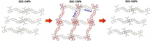 有機(jī)太陽(yáng)能電池(OSCs)由于具有輕量化、柔性、可溶液法大面積制備等優(yōu)點(diǎn),成為光伏領(lǐng)域的重要研究方向之一,特別是2015年以來新型小分子非富勒烯受體的出現(xiàn)極大地推動(dòng)了OSCs的發(fā)展。然而目前報(bào)道的絕大多數(shù)的高性能電池均是基于~100 nm厚的活性層,對(duì)于面向應(yīng)用的高性能厚膜器件報(bào)道較少。決定OSCs光伏效率的核心組件是電子給受體材料共混而成的本體異質(zhì)結(jié)(BHJ)活性層,電池內(nèi)部的光生激子生成與遷移、激子解離、電荷傳輸與復(fù)合等關(guān)鍵物理過程均依托于BHJ進(jìn)行。在~100 nm厚的活性層中,光子激子解離后可以高效地傳輸?shù)浇o受體界面并被收集,而在厚膜器件中,電荷傳輸過程中會(huì)發(fā)生嚴(yán)重的復(fù)合損失,從而嚴(yán)重降低OSCs的填充因子FF和最終效率。因此,如何改善厚膜BHJ中電荷傳輸是一個(gè)亟待解決的科學(xué)問題。最近,中科院青島能源所-包西昌研究員和李永海副研究員團(tuán)隊(duì)基于其前期開發(fā)的柔性側(cè)鏈-位阻末端基礎(chǔ)上,進(jìn)一步對(duì)柔性烷基碳數(shù)進(jìn)行微調(diào)控,以優(yōu)化分子堆積和本體異質(zhì)結(jié)形貌(圖1)。研究發(fā)現(xiàn),x=5和x=6時(shí)材料結(jié)晶性降低,造成吸收光譜藍(lán)移。意外的是,中間烷基碳數(shù)的IDIC-C5Ph具有最弱的薄膜結(jié)晶性和最寬的光學(xué)帶隙。盡管如此,單晶X射線衍射分析發(fā)現(xiàn)x=5時(shí)材料有區(qū)別于另外兩個(gè)側(cè)鏈截然不同的分子堆積方式。其誘導(dǎo)分子共軛主骨架產(chǎn)生兩種正交的分子取向,分子排列呈現(xiàn)獨(dú)特的網(wǎng)絡(luò)結(jié)構(gòu),具有更多的π-π作用位點(diǎn),可望實(shí)現(xiàn)高效的雙通道電荷傳輸(TCCT)(圖2)。針對(duì)x=5時(shí)IDIC-C5Ph材料展示出的弱薄膜態(tài)結(jié)晶性,科研人員通過多種后處理方式(熱退火TA、熱輔助溶劑退火TA-SVA)增強(qiáng)薄膜的結(jié)晶性(圖3)。通過掠入射廣角X-射線衍射(GIWAXS)發(fā)現(xiàn)三種材料對(duì)后處理方式具有不同的響應(yīng)。對(duì)于IDIC-C5Ph而言,TA-SVA極大地增強(qiáng)了薄膜結(jié)晶性,誘導(dǎo)薄膜形成大量微晶,吸收光譜紅移。TA-SVA優(yōu)化后基于IDIC-C5Ph的活性層中π-π堆積強(qiáng)度更高且堆積距離更小,有利于分子間電荷高效傳輸。高分辨透射電鏡(TEM)也進(jìn)一步證實(shí)了這一規(guī)律。光伏性能結(jié)果(圖4)表明,IDIC-C5Ph器件經(jīng)TA-SVA處理后,填充因子FF高達(dá)80.02%,且EQE大幅紅移,器件轉(zhuǎn)換效率PCE達(dá)到14.56%。高達(dá)80%的FF也是常規(guī)OSC器件中的最高值之一,反應(yīng)了活性層內(nèi)部良好的激子分離/電荷傳輸性能以及低的復(fù)合損失,大幅提高的FF歸功于活性層內(nèi)形成了具有TCCT的受體納米晶域。考慮到TCCT特性在電荷傳輸及抑制復(fù)合方面的優(yōu)勢(shì),構(gòu)建了不同活性層厚度的系列光伏器件(圖5)。常規(guī)單通道電荷傳輸IDIC-C4Ph器件,在膜厚105 nm時(shí)具有較高的FF(78.05%)和PCE,隨著厚度增加,F(xiàn)F降低明顯(300 nm, FF=70.12%; 485 nm, FF=65.26%),但厚膜OSCs的FF和PCE仍然高于絕大多數(shù)報(bào)道的數(shù)據(jù),反應(yīng)了此類側(cè)鏈結(jié)構(gòu)(烷基側(cè)鏈-芳香末端)在調(diào)控BHJ形貌方面的優(yōu)勢(shì)。更有意思的是對(duì)于IDIC-C5Ph器件而言,在低膜厚115 nm時(shí)FF高達(dá)80.02%,隨著膜厚增加,在307 nm時(shí)FF仍然高達(dá)75%,媲美大多數(shù)報(bào)道的低膜厚器件數(shù)據(jù)。在高達(dá)470 nm時(shí),F(xiàn)F依然大于70%,PCE達(dá)到13%,體現(xiàn)了TCCT特性在厚膜OSCs研究中的優(yōu)勢(shì)。相關(guān)研究成果以“Subtle Side Chain Triggers Unexpected Two-Channel Charge Transport Property Enabling 80% Fill Factors and Efficient Thick-Film Organic Photovoltaics”為題目發(fā)表在Cell Press旗下的期刊The Innovation.圖1. 材料側(cè)鏈調(diào)控與基本性質(zhì)